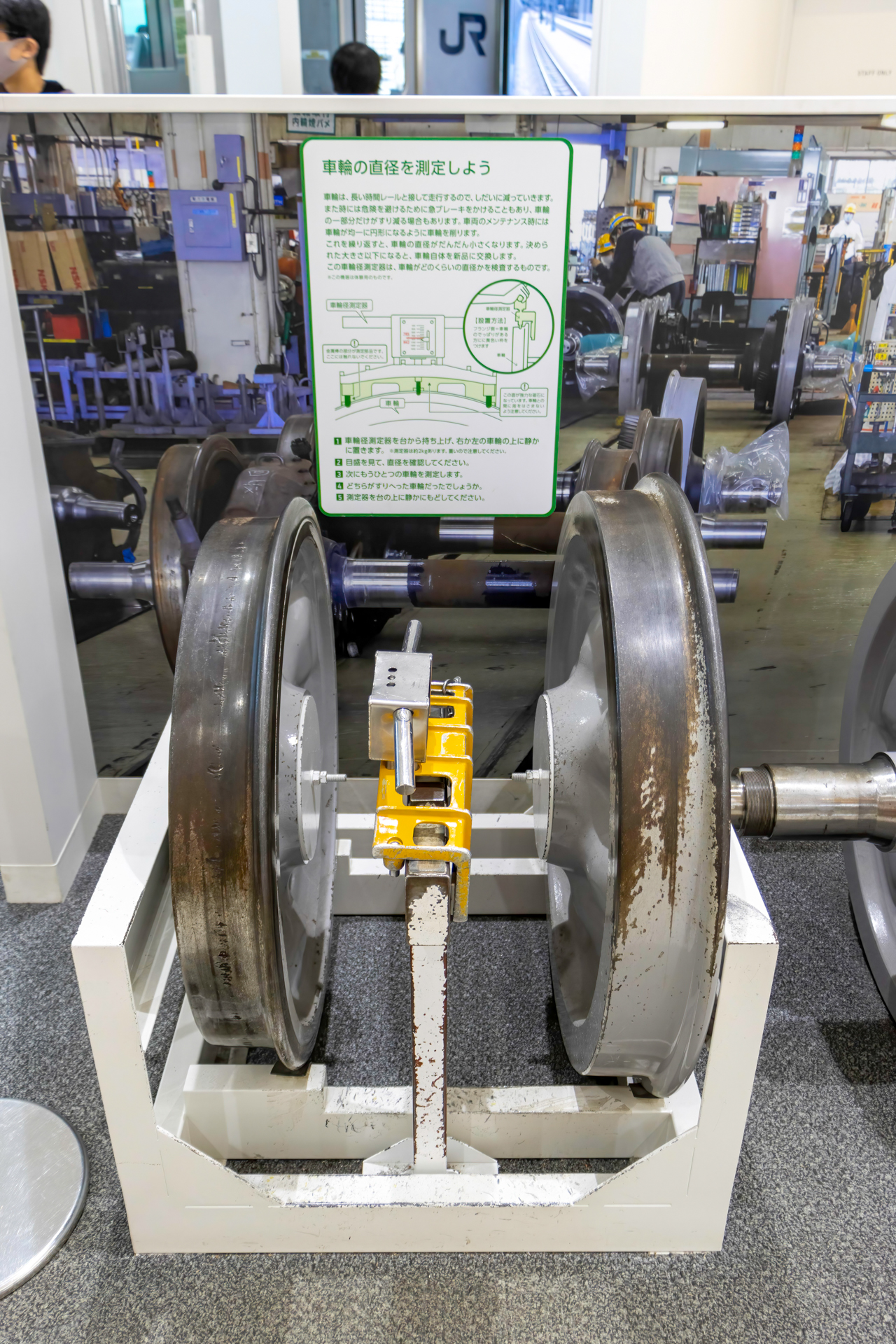 오른쪽은 차륜의 직경과 마모도를 검사할 수 있는 도구(가운데 노란 색)라고 한다.