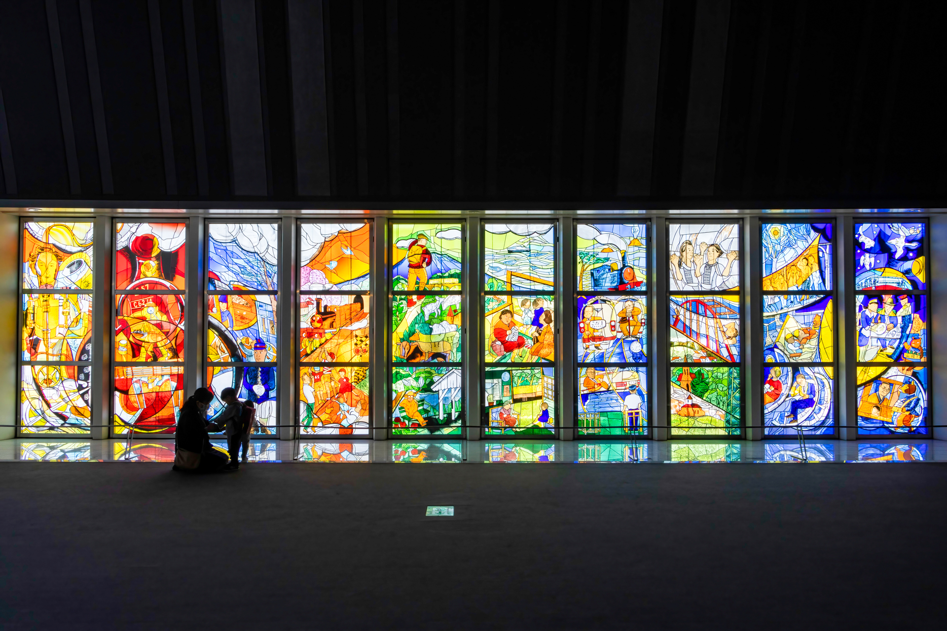 이 박물관에 대한 그림이 스테인드 글라스로 그려져 있었다.
