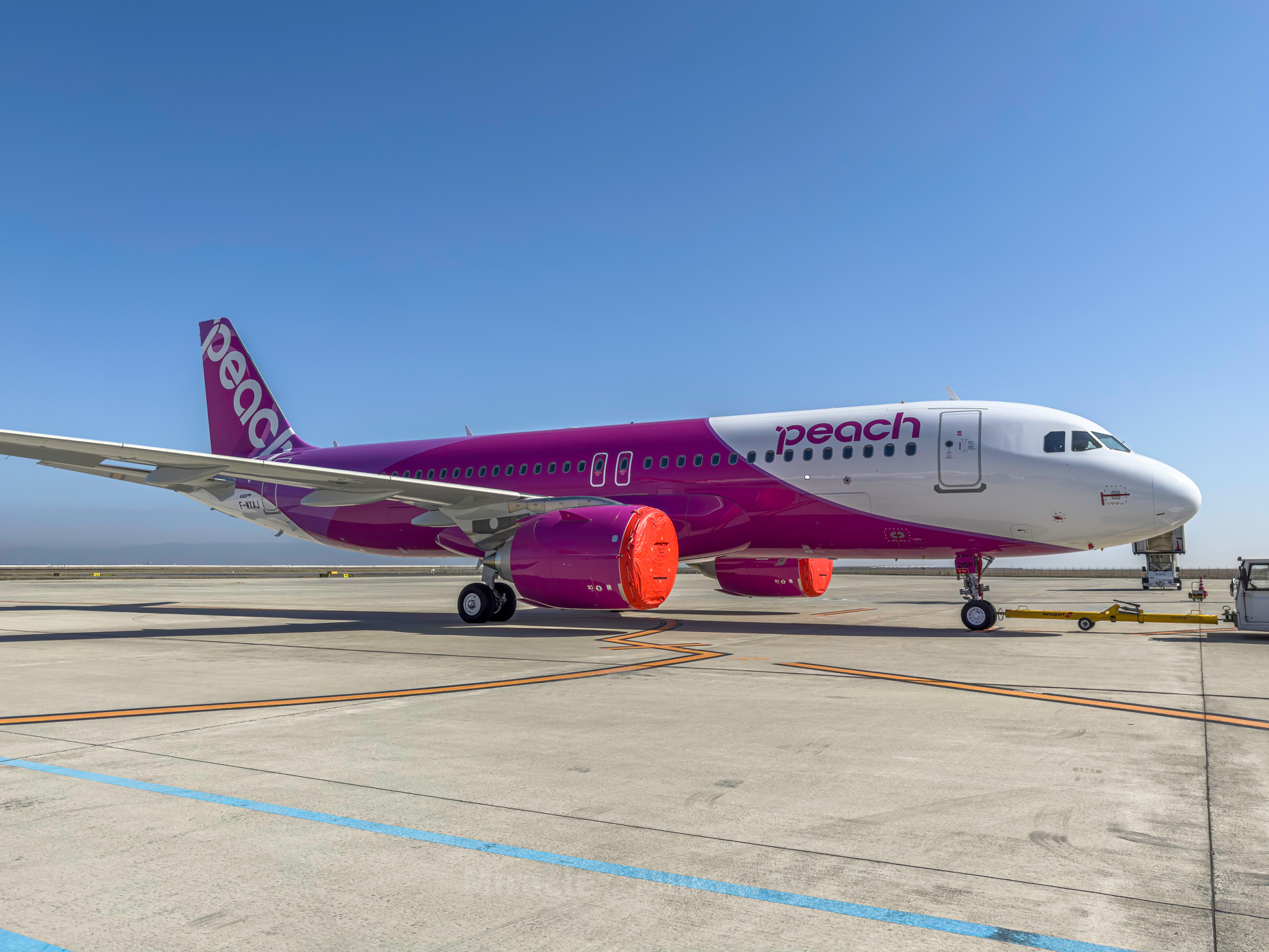 옆에는 이제 막 에어버스로부터 인도받은 듯한 피치운수의 비행기가 있다