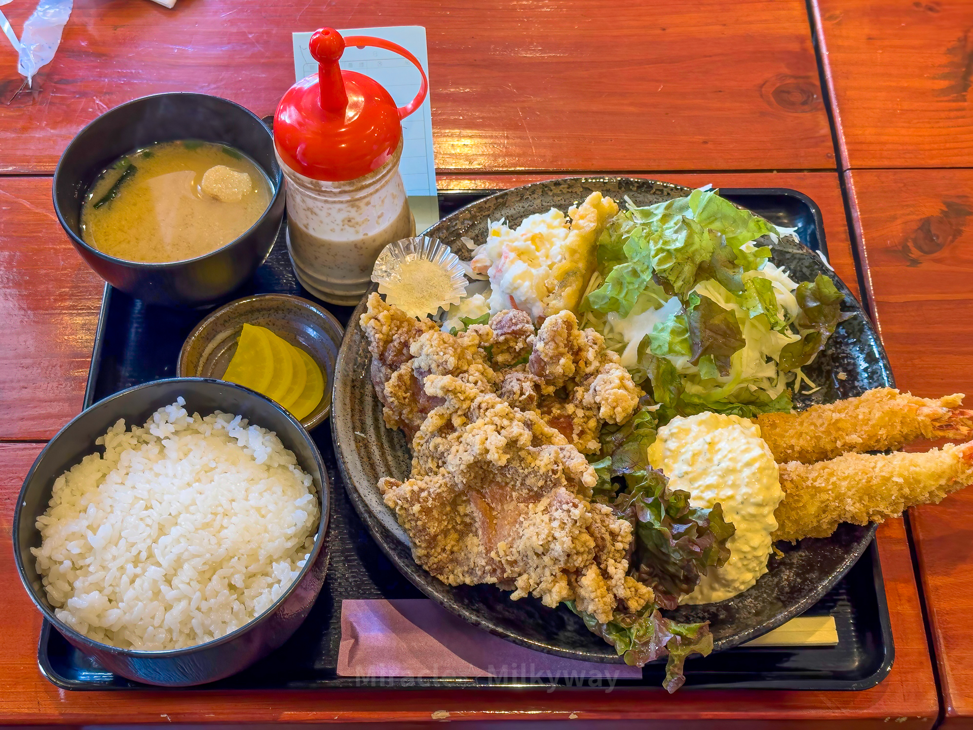 아점으로 먹은 카라에비(카라아게와 에비후라이) 정식