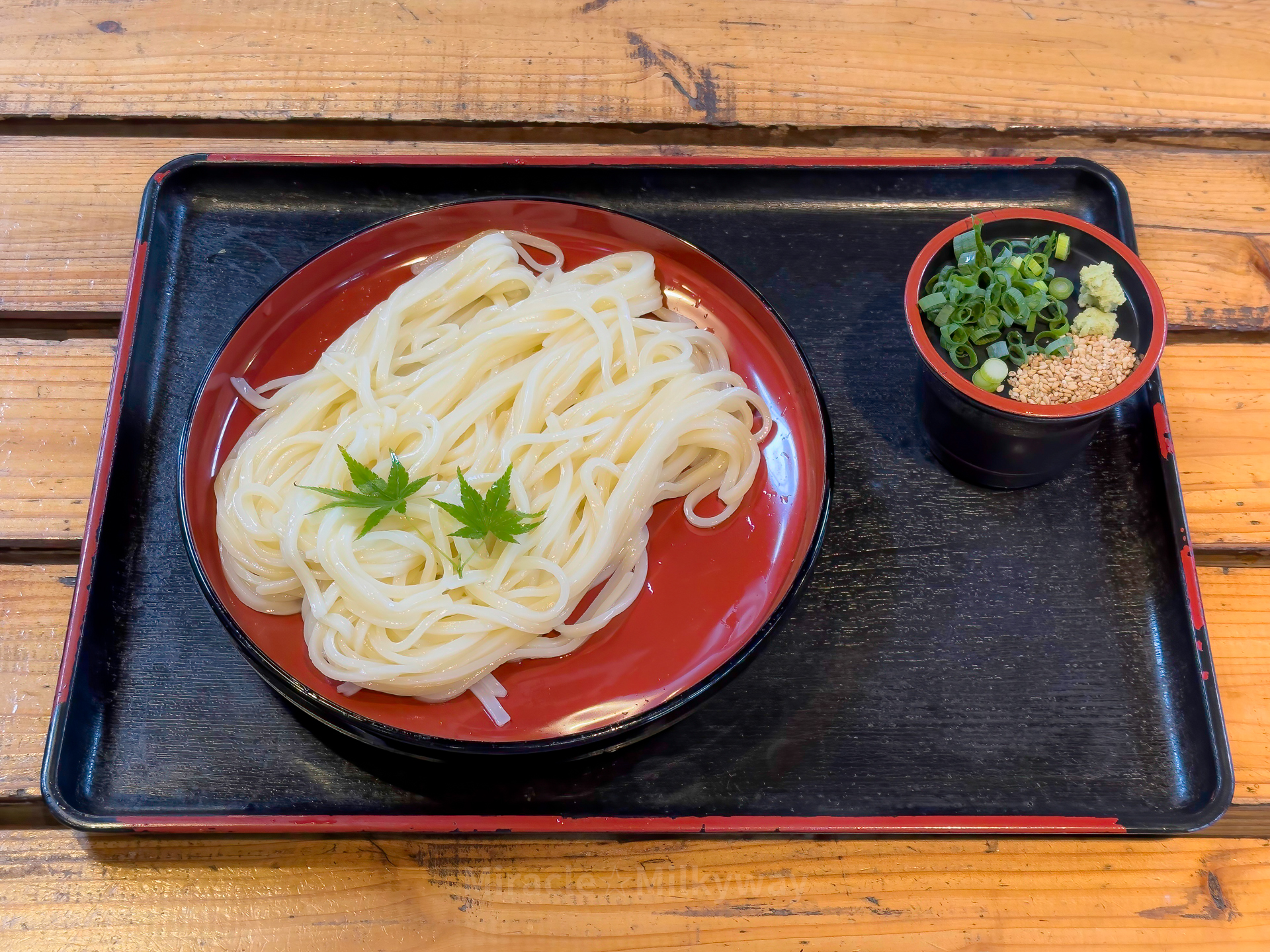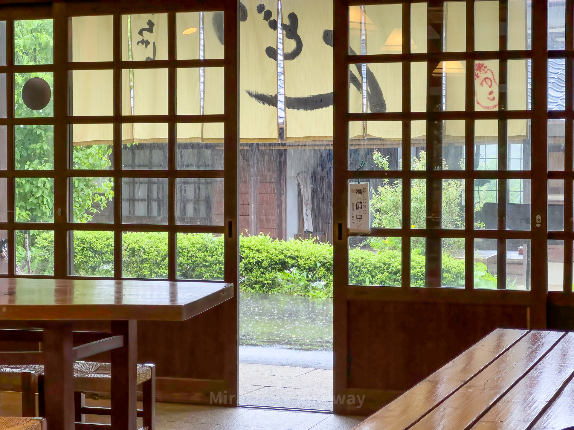 소나기 추적추적 내리는 모습을 보며 '노코 히야시우동'을 먹습니다.