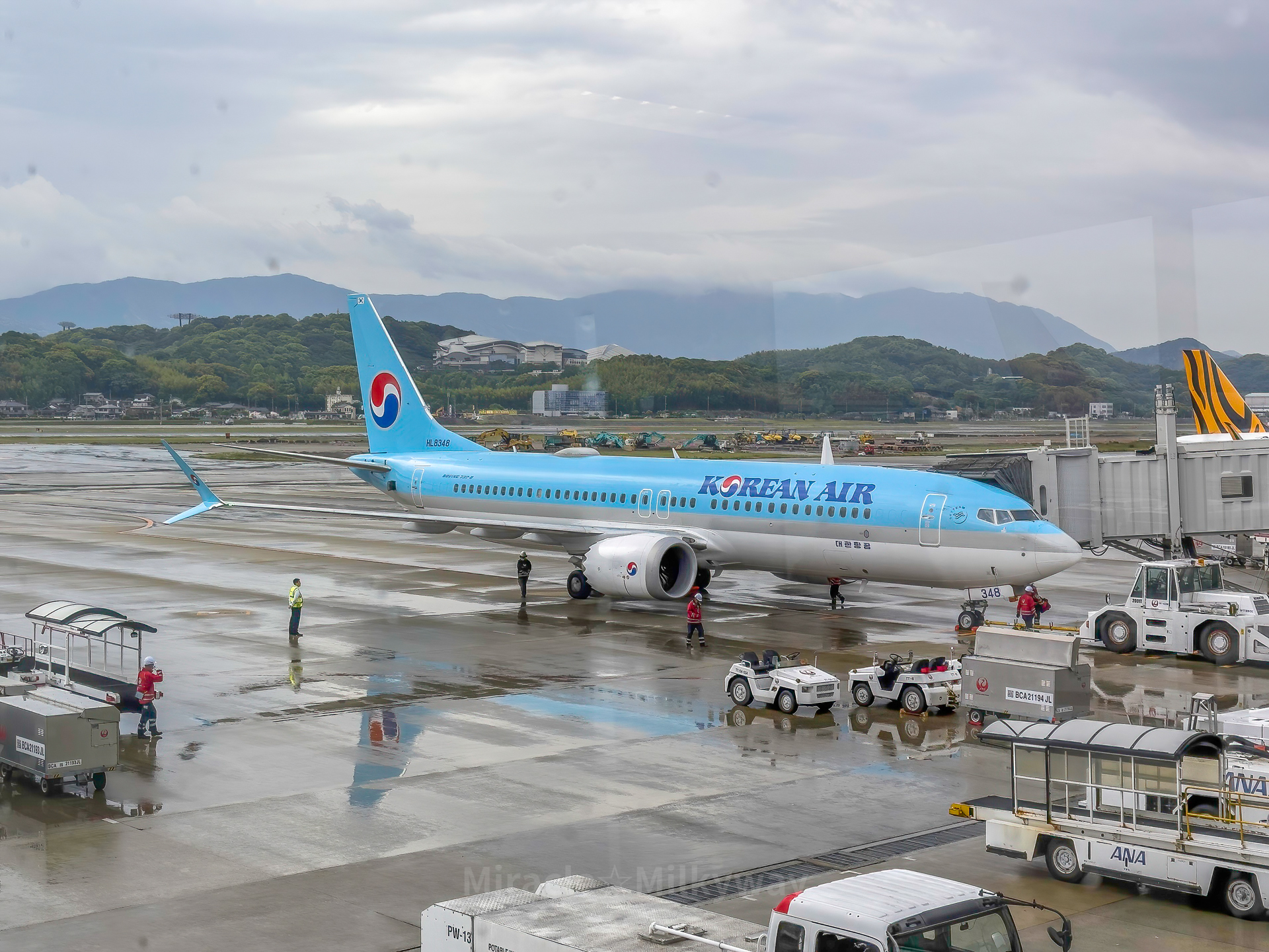 후쿠오카 날씨가 안 좋아서 대마도 상공에서 쳇바퀴를 돌다 내립니다.