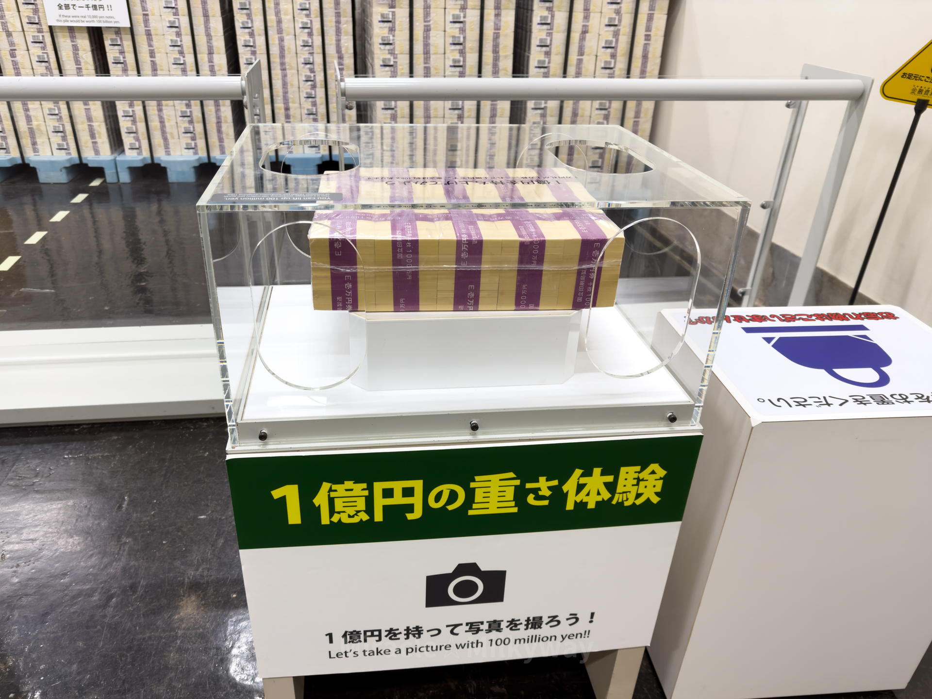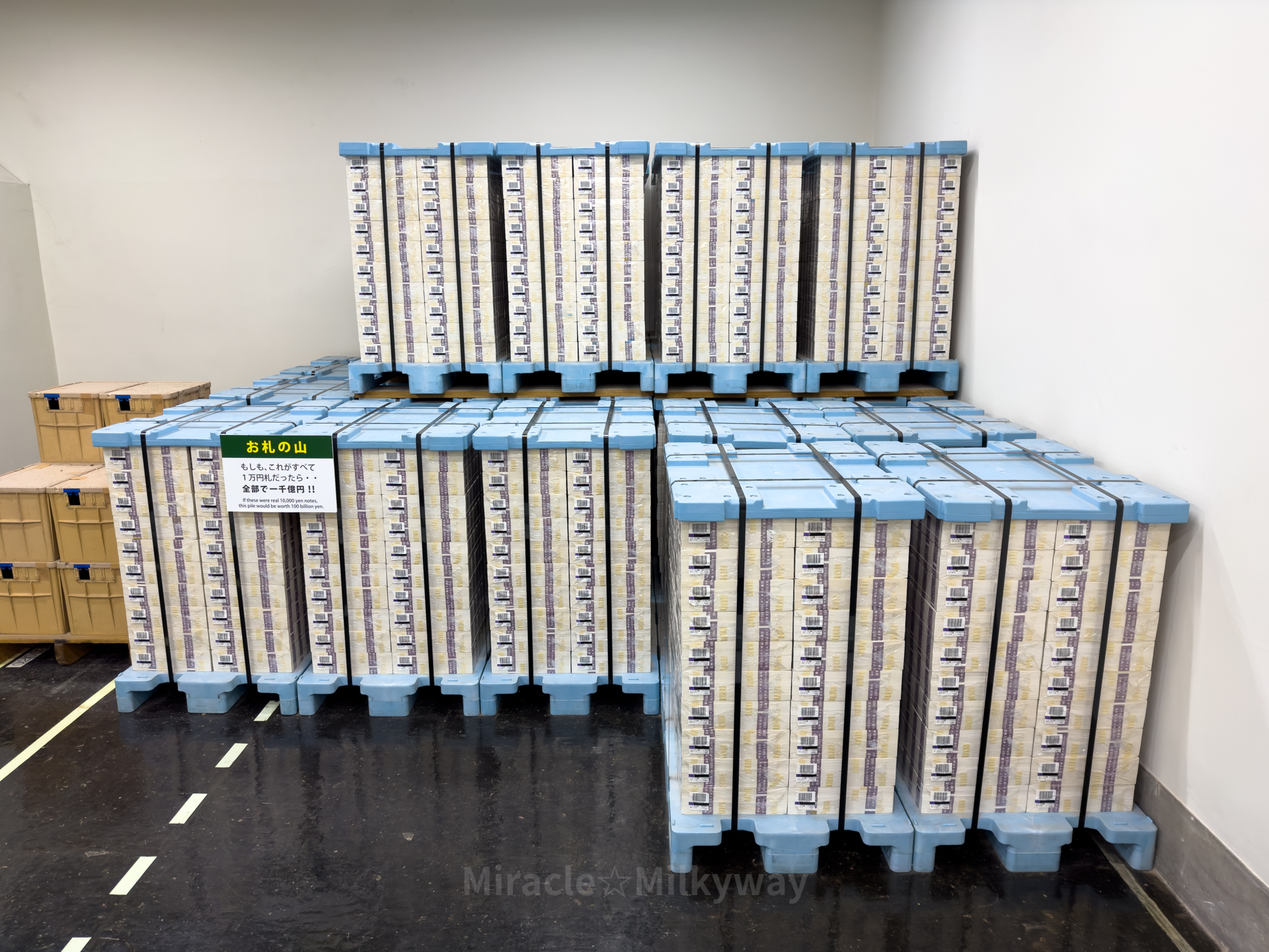 그 뒤로 전시된 1천억 엔.