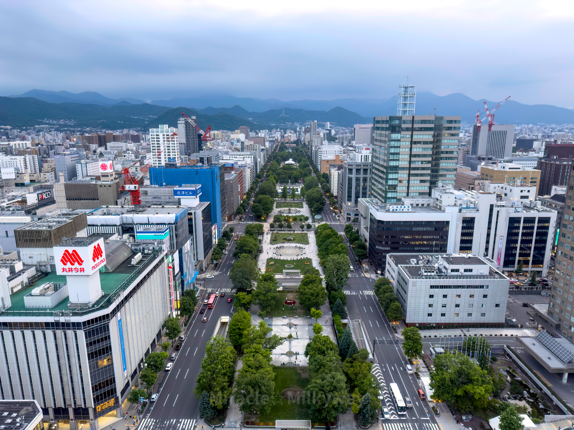 오도리 공원이 한 눈에 내려다 보여 장관이다.