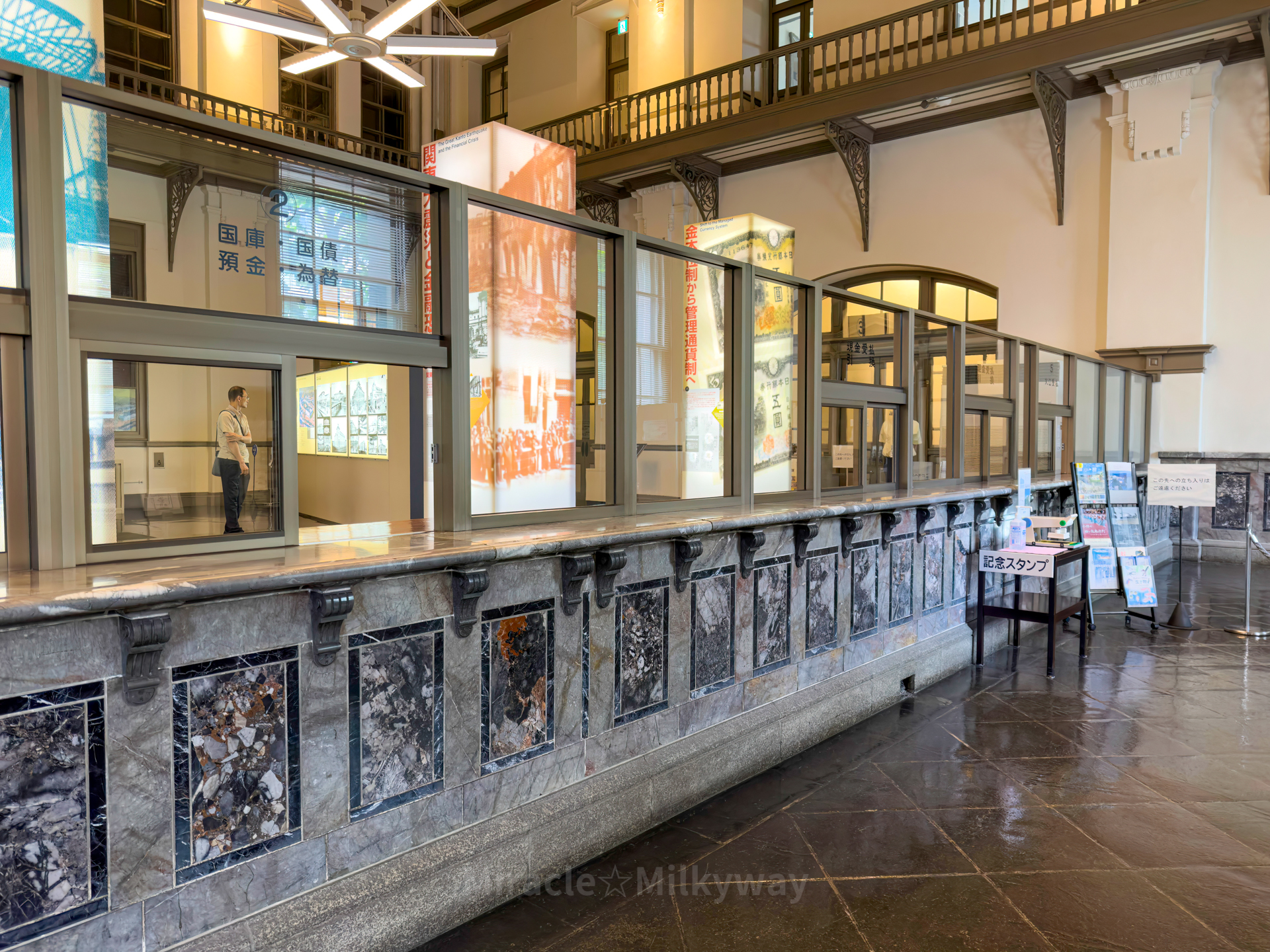 과거 영업 시 쓰이던 창구 유리가 맞이한다.
