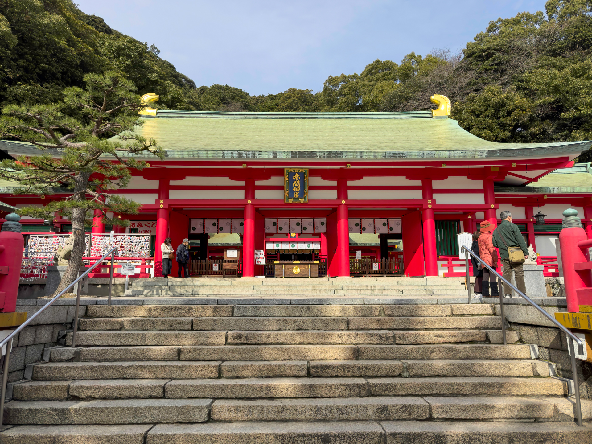 가라토 시장에서 다시 5분 정도 걸으면 '아카마 신궁'이라는 신사가 나온다.