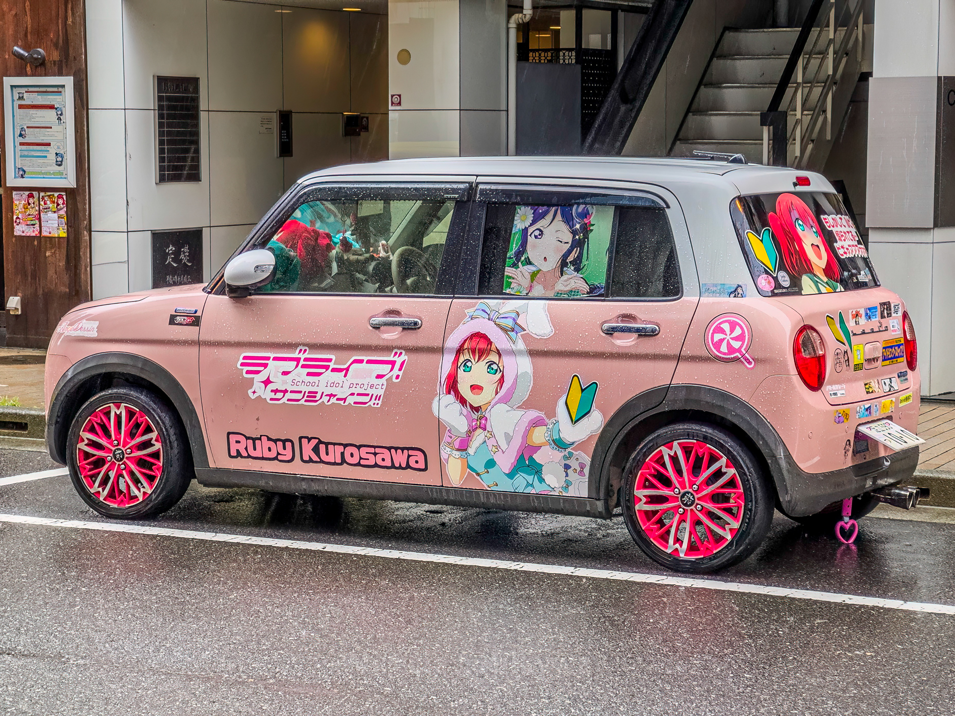 호텔로 걸어가는 길에 차를 캐릭터로 가득 채운 이타샤(痛車)를 발견. 지난 시즈오카 여행에서 자주 본 '러브라이브 선샤인' 시리즈의 '쿠로사와 루비' 캐릭터가 그려져 있었다.
