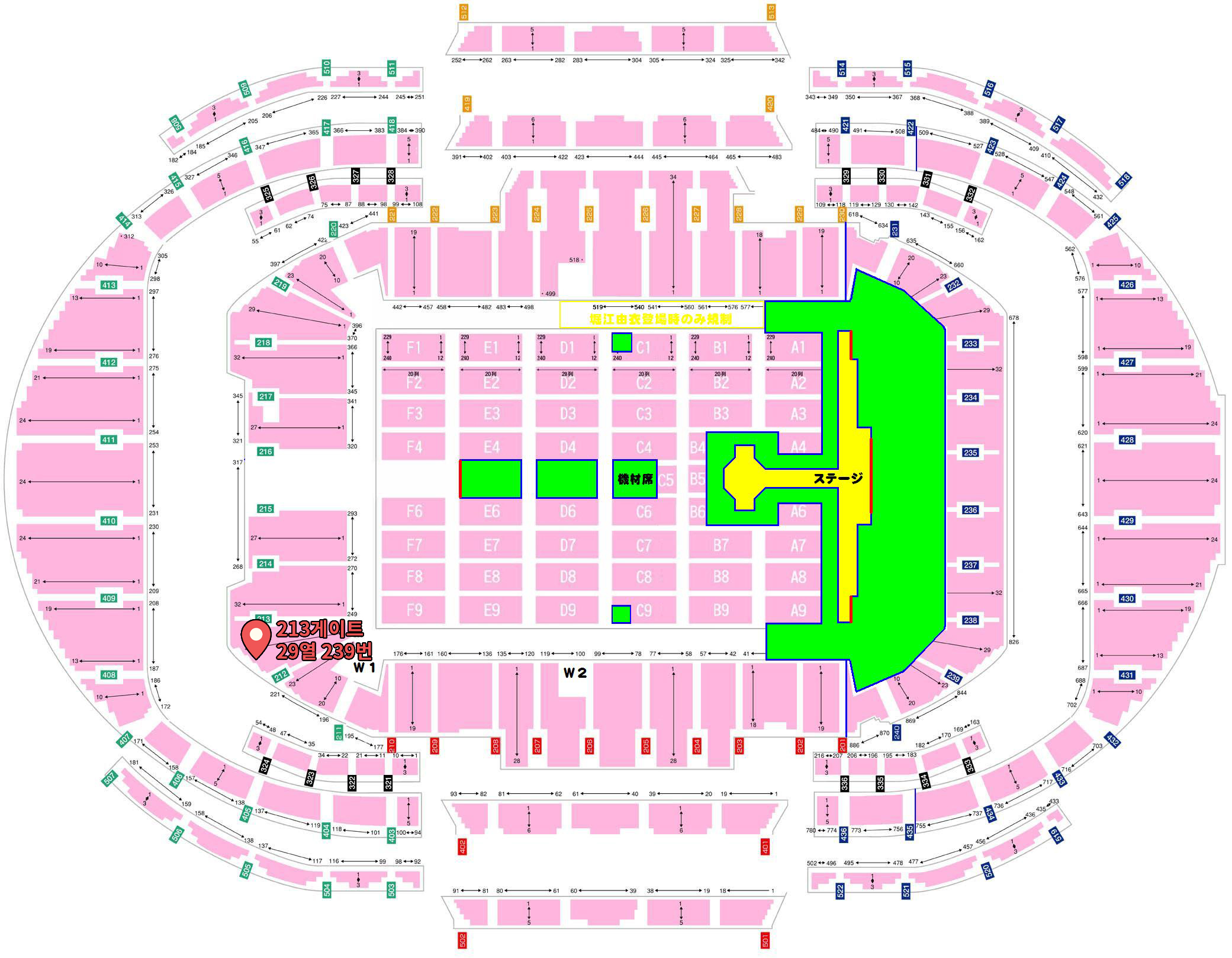 내가 앉은 자리는 200번대의 약간 후방 좌석. 높이는 괜찮았지만 무대와의 거리는 역시 좀 멀었다. 옆에는 망원경을 가지고 온 사람도 있었으니 참고하기로 했다