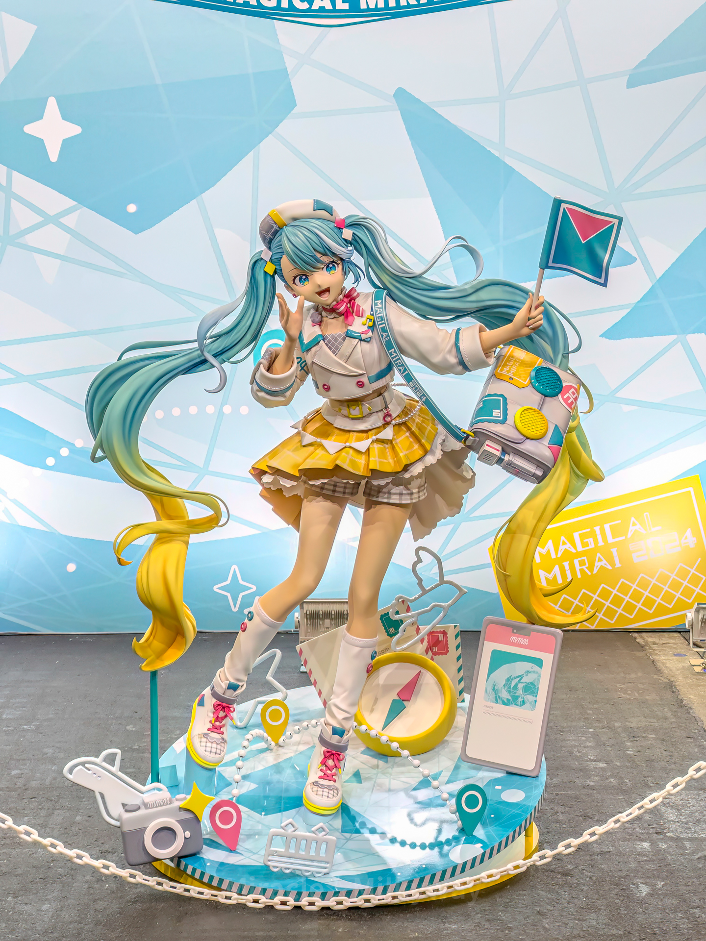 입장하자마자 보이는 매지컬미라이 2024년 디자인의 하츠네 미쿠(初音ミク) 등신대 피규어