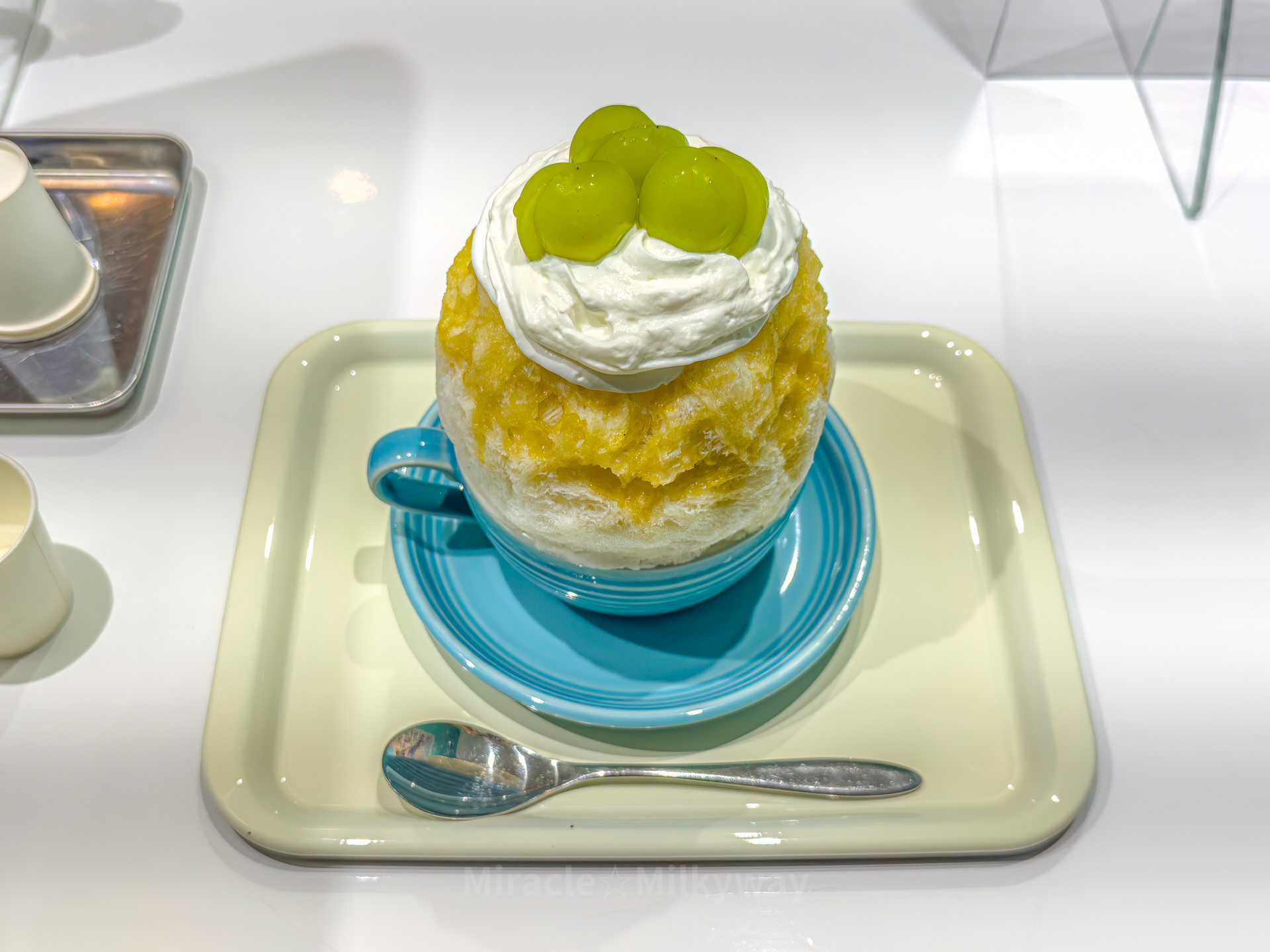 호텔에 짐을 위탁한 후 디저트로 즐긴 샤인머스켓 빙수. 겉이 전부일 줄 알았는데, 속에도 샤인머스켓과 블루베리가 산더미처럼 쌓여서 입이 매우 즐거웠다. 물이 아닌 우유로 만든 얼음도 부드럽고 최고였다.