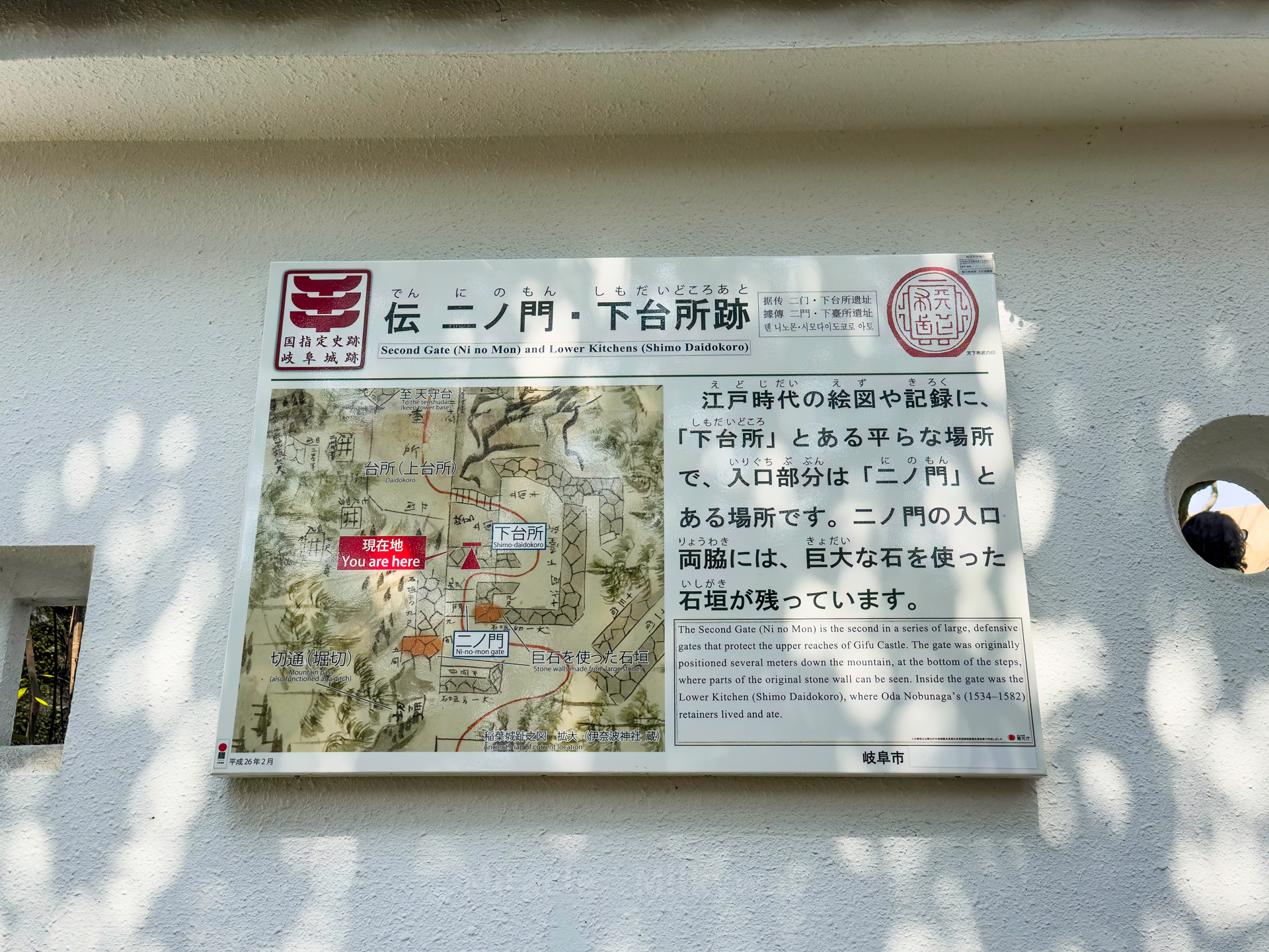 에도시대 당시의 성벽 구조와 현재 등산 위치를 설명해 주는 작은 지도