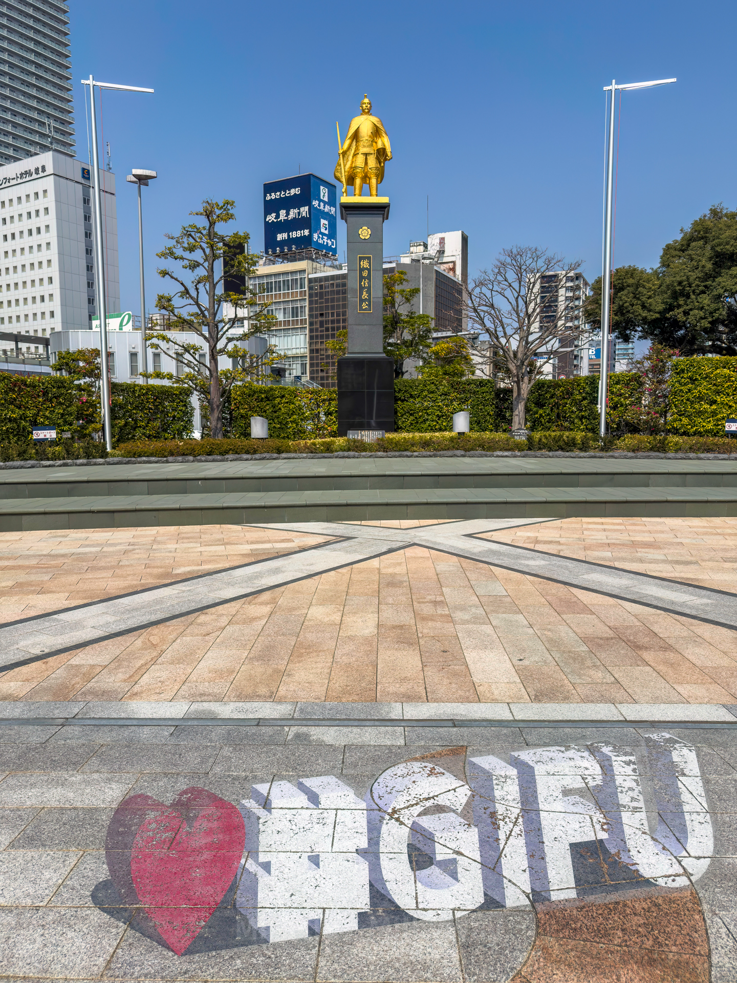 역 앞의 기후를 대표(?)하는 오다 노부나가 동상과 전차 전시물