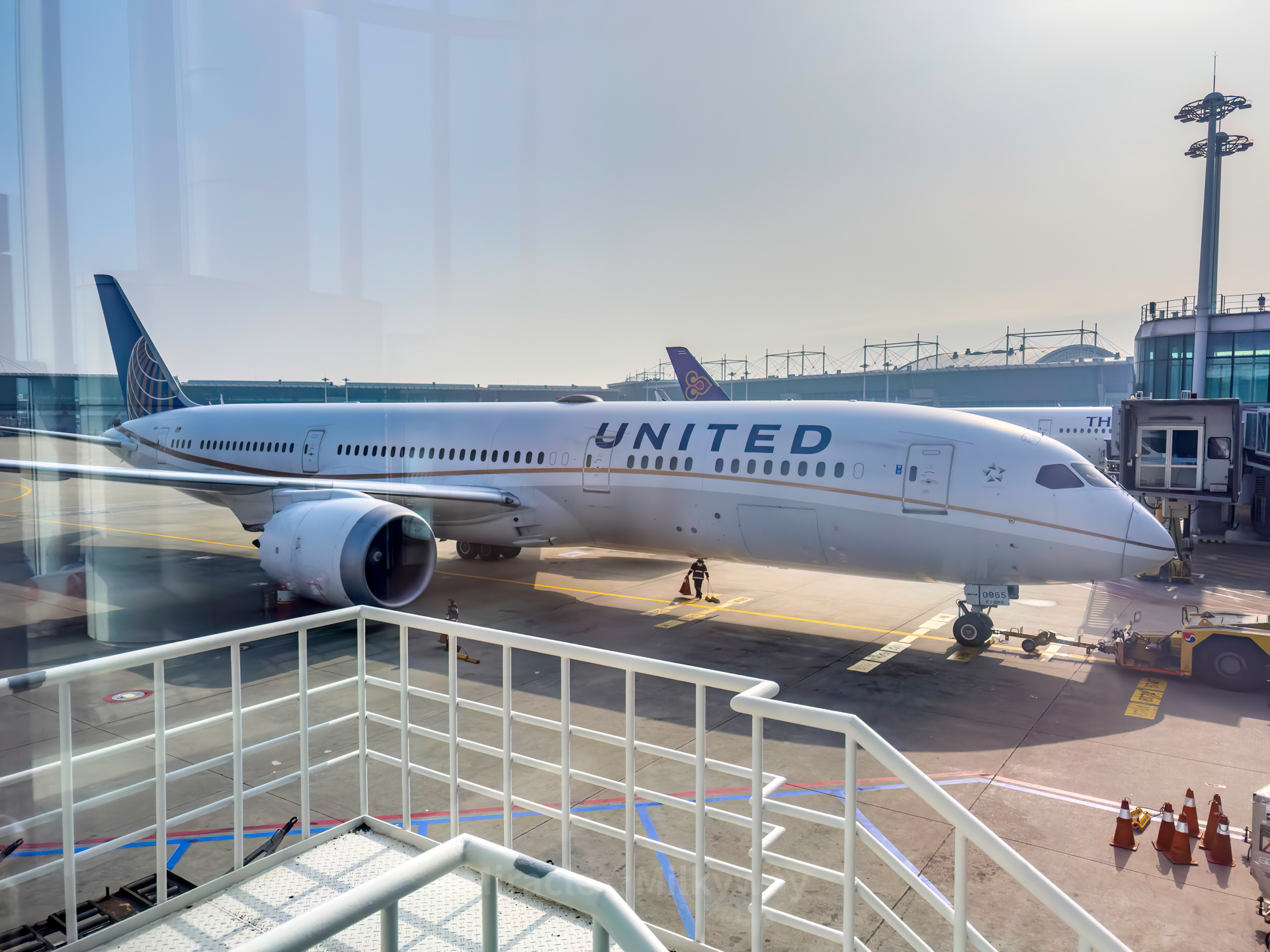 비행기 탑승 전, 옆 게이트에는 유나이티드의 샌프란시스코행 보잉 787-9가 서 있었다.