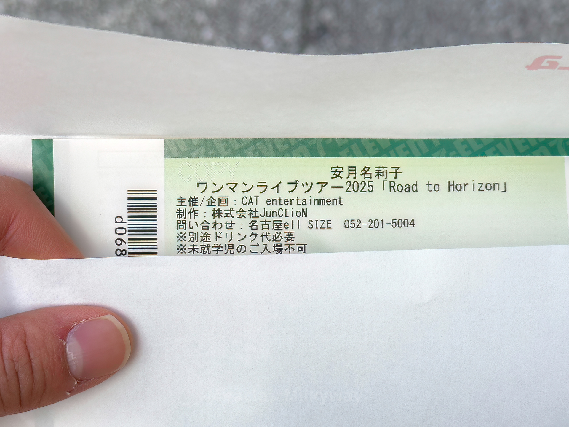 체크인 후, 예약했던 아즈나리코(安月名莉子) 가수의 원맨 라이브 티켓을 편의점에서 수령했다.