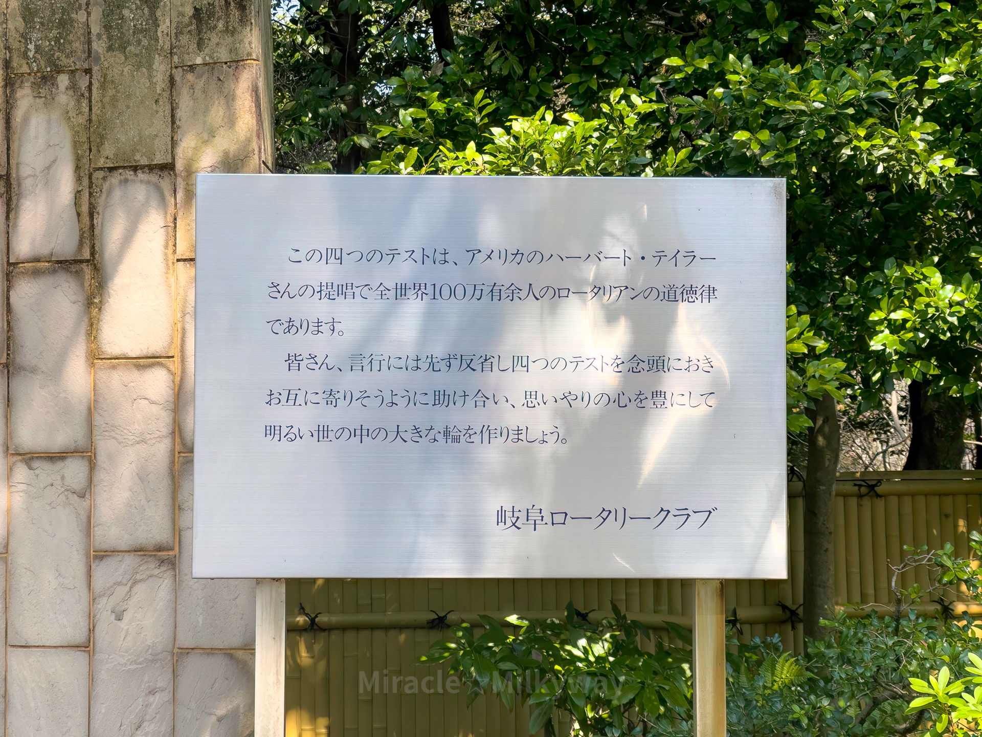 공원으로 들어가는 길, 4가지 테스트라는 석판이 세워져 있었다. 내용은 아래와 같다.