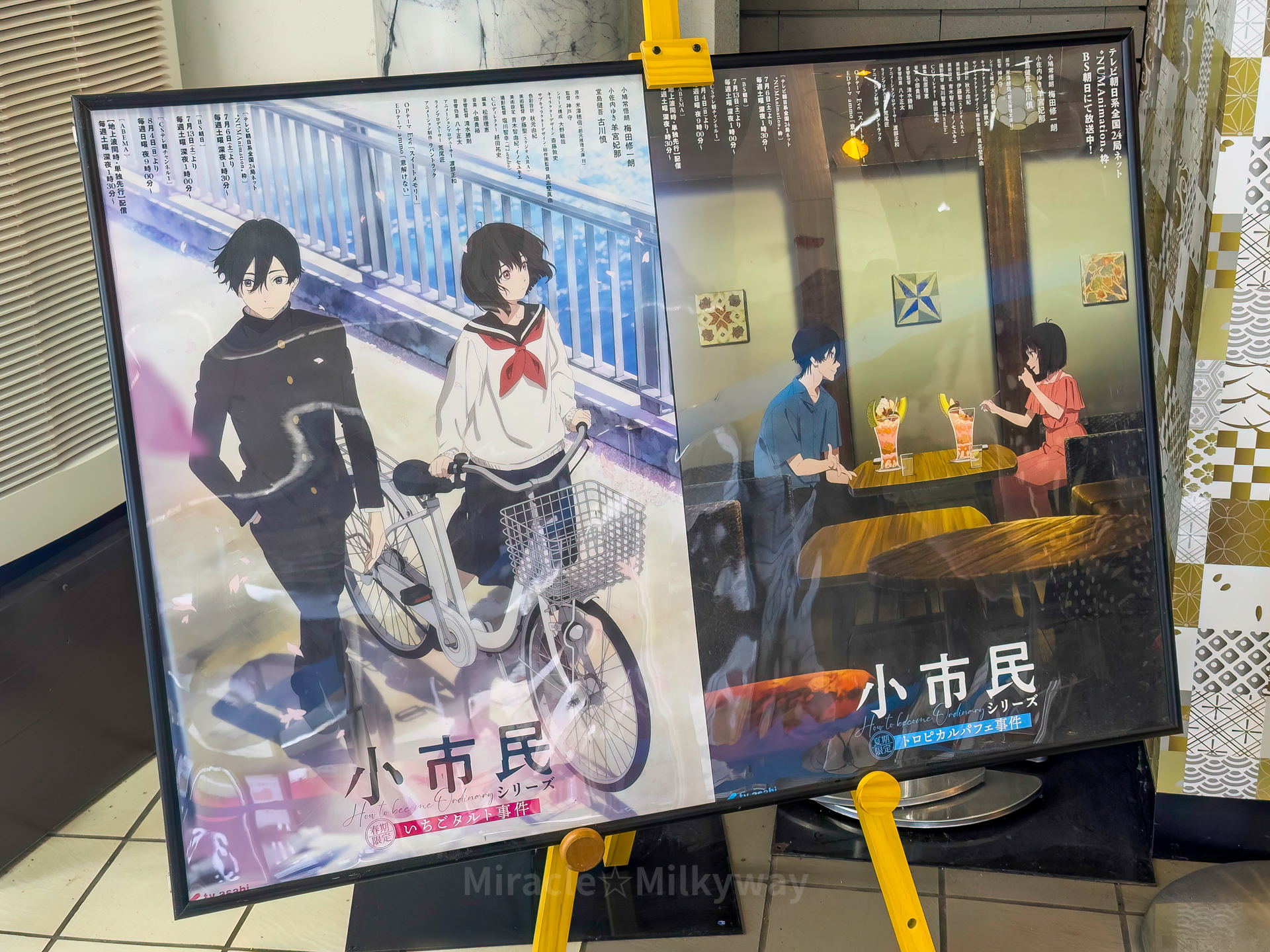 기후 시가 배경인지, 최근 듣기만 하고 아직 보지 않은 애니메이션 '소시민' 시리즈가 케이블카 탑승장에 콜라보 전시되어 있었다.