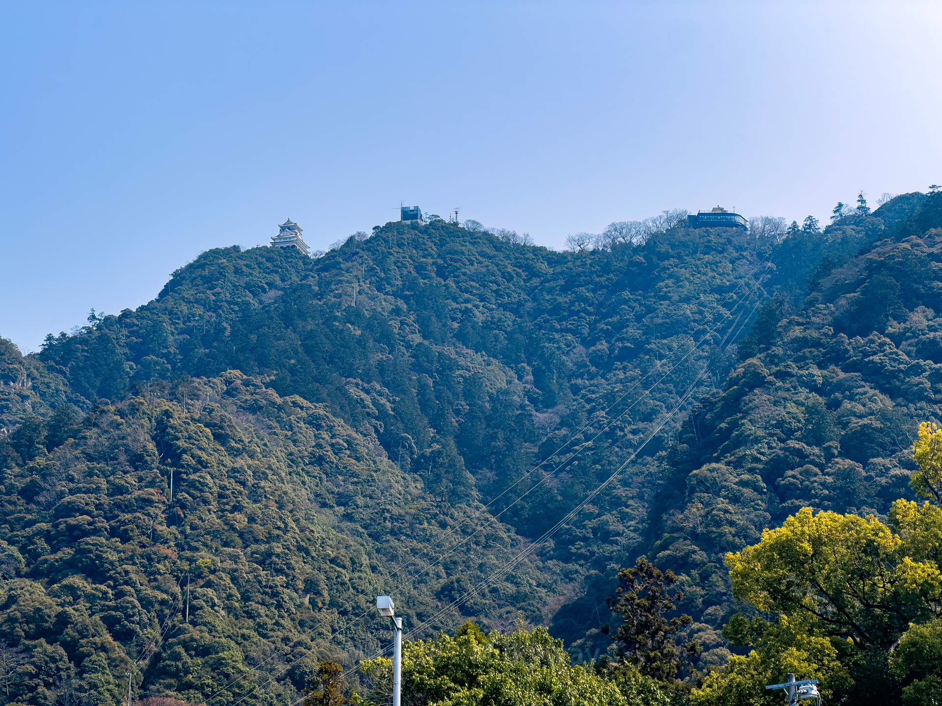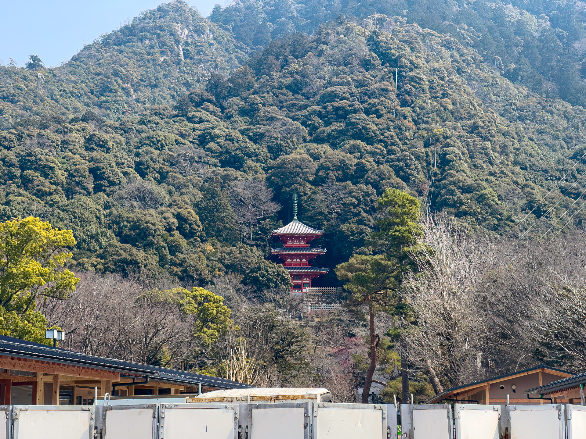 케이블카 밑으로 보이는 기후공원 삼층 목탑(岐阜公園 三重塔)
