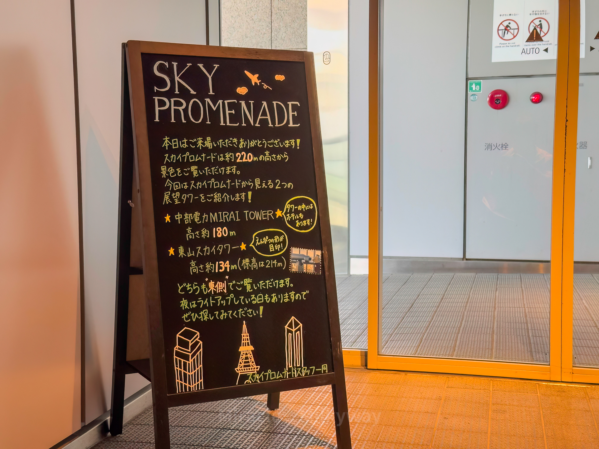 이전 나고야 방문 때, 중부전력 미라이 타워를 갔었다. 그래서 이번엔 나고야 역 앞의 '스카이 프롬나드' 전망대를 와 봤다.