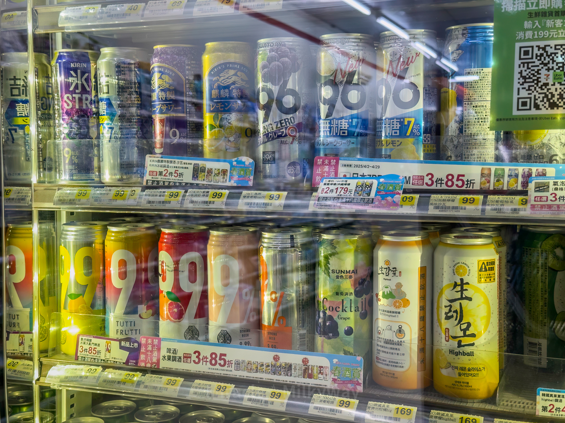 마지막으로 숙소로 돌아가는 길, 편의점에 잠깐 들렀다. 주류 코너는 한국 술과 일본 술이 거의 반 가까이 차지하고 있었다.