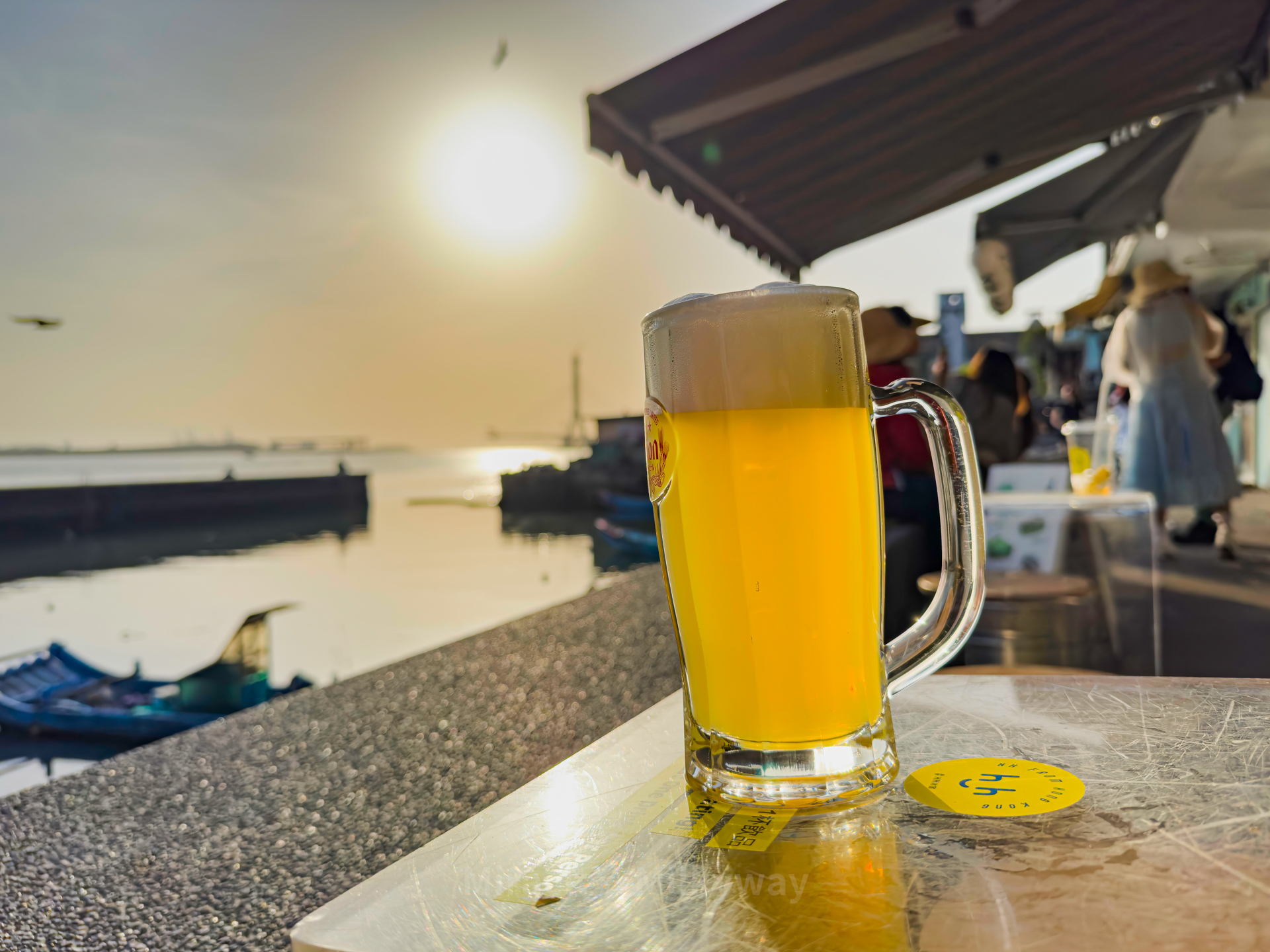 홍마오청에서 나와 해안가를 따라 단수이역으로 돌아가던 도중, 후웨이 항구(滬尾漁港, 제1항구)의 상점가에서 생맥주를 파는 것을 봤다.
